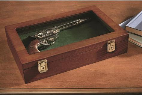 Gun Display Case Wood Handgun Pistol Revolver Glass Lock Knife Shadow Box Trophy